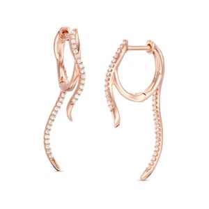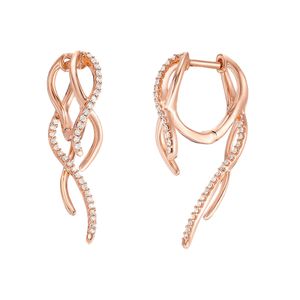 Women's 10K Rose Gold White Diamond Designer Huggie Earrings