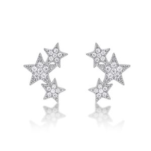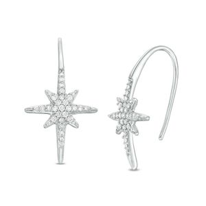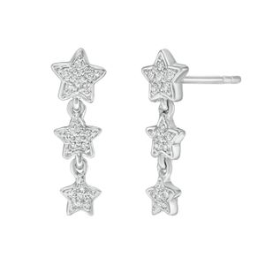 Sterling Silver TrIon Platinge Star Diamond Fashion Earrings, 0.15 Cttw