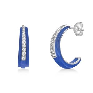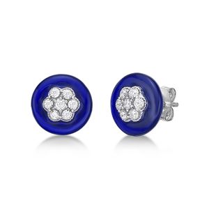 Sterling Silver and Blue Ceramic Earrings with 0.20 Cttw
