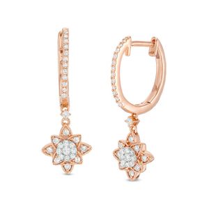 Women's 10K Rose Gold Flower Diamond Hoop Earrings