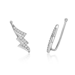Sterling Silver Lighting Bolt Earrings with Round Diamond, 0.15 Cttw