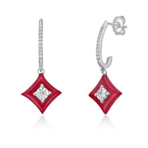 Sterling Silver and Red Ceramic Earrings with 0.20 Cttw