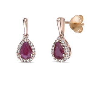 Women's 10K Rose Gold 6x4 MM Pear Shaped Genuine Ruby Friction Back Earrings