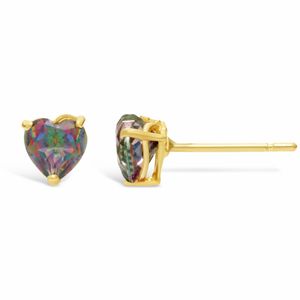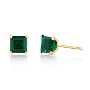 Women's 10K Yellow Gold Created Emerald Earrings
