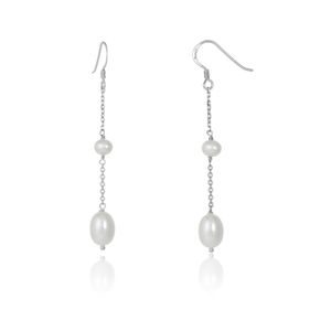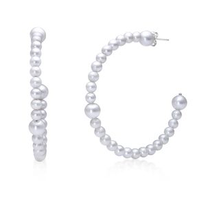 Women's 925 Sterling Silver 4-7MM Freshwater White Pearl Hoop Friction Back Earrings