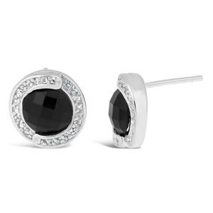 Women's 925 Sterling Silver Black Onyx Round Earrings