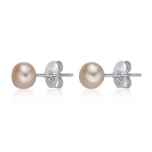 Women's 925 Sterling Silver 5-6MM Freshwater Pink Pearl Friction Back Stud Earrings