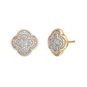 Women's10K Yellow Gold Four-Leaf Clover Stud Earrings with Diamonds