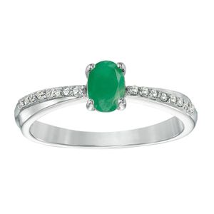 7X5 Oval Emerald and 0.26 Cttw Diamond Ring in Yellow Gold
