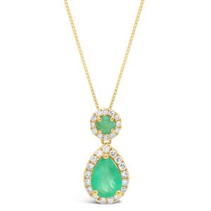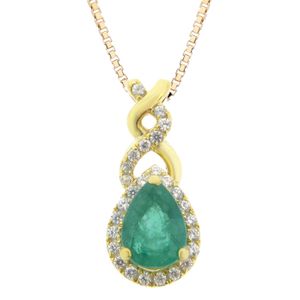 Emerald Pear and Round Pendant with Diamond Accent in Yellow Gold