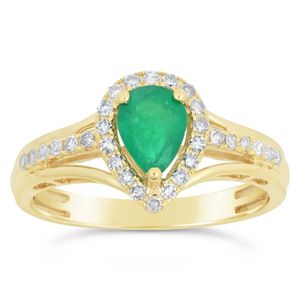 Emerald Pear Ring with Diamond Accent in Yellow Gold