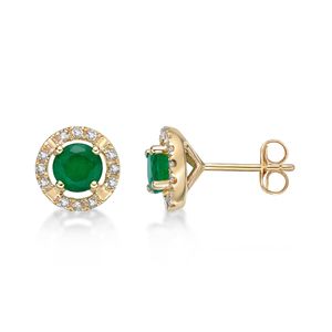 Emerald Earrings with 0.14 cttw Diamond in Yellow Gold