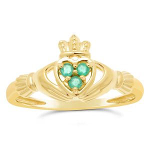 Women's 10K Yellow Gold Created Emerald Earrings