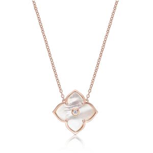 Mother of Pearl Flower Pendant Necklace in Rose Gold Plate Sterling Silver with Cubic Zirconia - 16- 18 Inch Adjustable Cable Chain