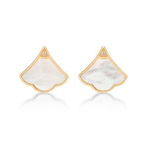 925 Sterling Silver Mother of Pearl Fan Stud Earrings with Yellow Gold Plating Friction Back