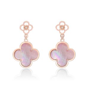 Pink Mother of Pearl Double Flower Dangle Drop Earrings in Rose Gold Plated Sterling Silver - Friction Back