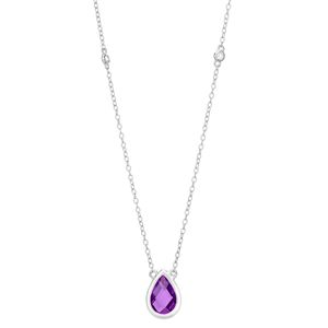 Amethyst and White Topaz Pear Necklace in Sterling Silver