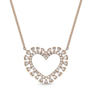 Diamond 10K Rose Gold Heart Necklace with Diamond - 18 Inch Cable Chain