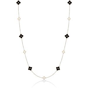 Black Onyx Necklace in 925 Sterling Silver with Yellow Gold Plating Adjustable Lobster Claw