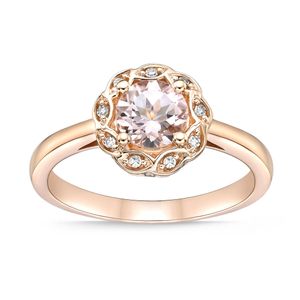 10K Rose Gold Ring with 6 MM Round Morganite and 0.05 Carat Diamond Halo