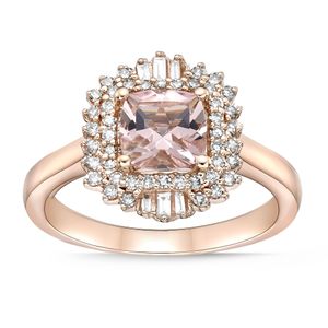 10K Rose Gold Ring with 7 MM Cushion Cut Morganite and 0.18 Carat Diamond Accents