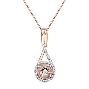 10K Rose Gold Pendant with 7 MM Round Morganite and 0.16 Carat Diamond Accent - 18 Inch Box Chain