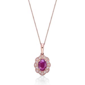10K Rose Gold Princess Dianna Pendant with 7x5 Oval Cut Ruby and 0.08 Carat Diamond Halo - 18 Inch