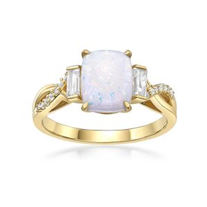 Yellow Gold Plated Sterling Silver 9x7 Cushion Cut Created Opal Ring with Created White Sapphire