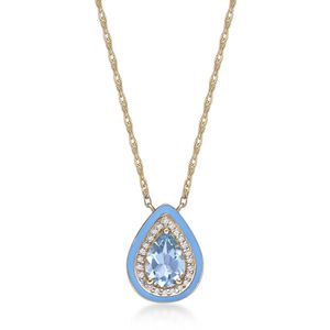 Yellow Gold Plated Sterling Silver 7x5 Pear Shaped Blue Topaz Pendant with CWS and Blue Enamel Halo