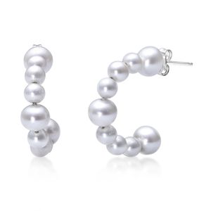 Women's 925 Sterling Silver 4-7MM Freshwater White Pearl Hoop Friction Back Earrings
