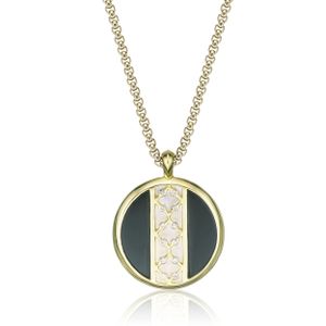 Women’s 14K Yellow Gold Plated Round Pendant with Black Onyx and Mother of Pearl