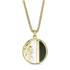 Women’s 14K Yellow Gold Plated Round Pendant with Mother of Pearl, Black Onyx, and Created White Sapphire