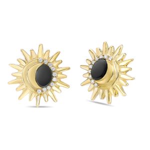 Women’s 14K Yellow Gold Plated Celestial Earrings with Black Onyx and Created White Sapphire