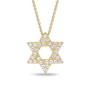 Women's Yellow Gold Plated Sterling Silver Created White Sapphire Star of David Pendant Necklace - 18 Inch Cable Chain