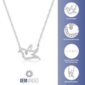 Sterling Silver Dove Necklace with Round Diamond, 0.13 Cttw