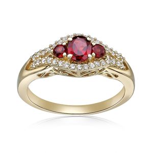 Yellow Gold Plated Sterling Silver Oval Cut Garnet Ring Vintage Ring with Created White Sapphire