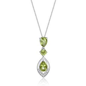 6X4mm Pear, 3mm Round Peridot and Created White Sapphire Pendant in Sterling Silver with 18" Box Chain