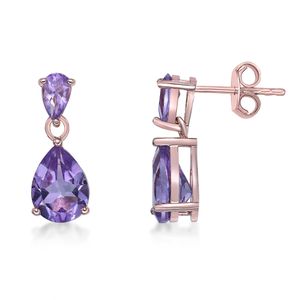 18K Rose Gold Plated Sterling Silver 8x6 Pear Shape Amethyst Earrings