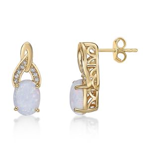 2 Micron Yellow Gold Plated Sterling Silver 8x6 MM Oval Cut Created Opal Friction Back Earrings with Created White Sapphire Accent