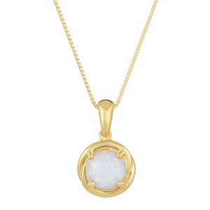 2 Micron Yellow Gold Plated 7 MM Round Created Opal Circle Pendant - 18 Inch Box Chain