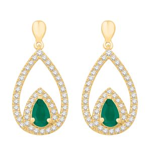 5X3 Pear Shape Emerald & 0.36 Cttw Diamond Earrings in Yellow Gold