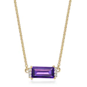 10X5 Baguette Amethyst and Create White Sapphire Necklace in 2 Micron Pink Gold Plated Sterling Silver