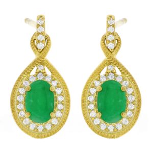 7X5 Oval Emerald and 0.27 Cttw Diamond Earrings in Yellow Gold