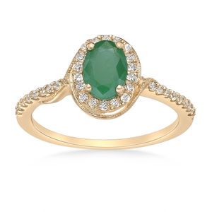 7X5 Oval Emerald and 0.26 Cttw Diamond Ring in Yellow Gold