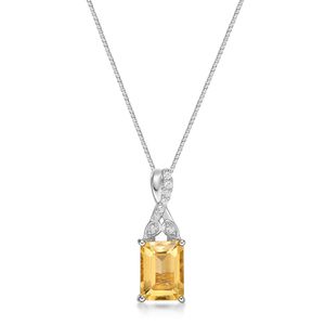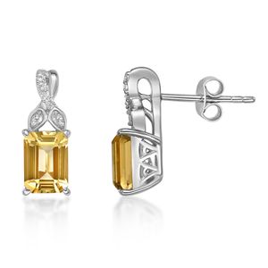 925 Sterling Silver 8x6 Octagon Cut Citrine Earrings with Created White Sapphire Accent - 18" Box