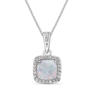 925 Sterling Silver 6 MM Cushion Cut Created Opal Pendant with Created White Sapphire - 18 Inch Box Chain