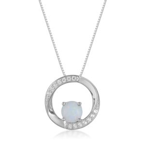 925 Sterling Silver 5 MM Round Created Opal Circle Pendant with Created White Sapphire - 18 Inch Box Chain