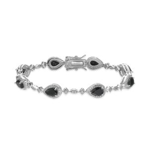 925 Sterling Silver 7x5 MM Pear Shaped Black Onyx Station Bracelet with Created Whte Sapphire - 7.25 Inch