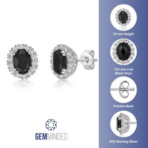 925 Sterling Silver Oval Cut 7x5 Black Onyx with Created White Sapphire Halo