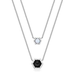 925 Sterling Silver Layered Necklace with Black Onyx and Created Opal